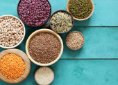 miska z fasolą i roślin strączkowych na starym drewnianym