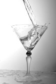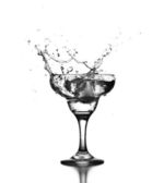 czarno-biały rozprysk wody w szklance, przez rozpryskiwanie wody w tle