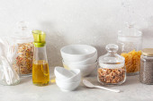 Zdjęcie "Żywność dostarcza zapasy żywności w sytuacji kryzysowej na okres kwarantanny. Różne szklane słoiki z ziarnami, makaron, puszki konserw, papier toaletowy, tabliczka kreda ręcznie pisane litery Zostań w domu i zrelaksuj się." może być wykorzystywane do celów osobistych i komercyjnych zgodnie z warunkami zakupionej licencji Royalty-free. Obraz jest dostępny do pobrania w jakości wysokiej rozdzielczości do 5760x3840.