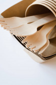 Zdjęcie "Ekologiczne biodegradowalne kartony lub papierowe naczynia. Koncepcja zerowego recyklingu odpadów. Catering i ulicy fast food papierowe kubki, talerze i widelce drewniane." może być wykorzystywane do celów osobistych i komercyjnych zgodnie z warunkami zakupionej licencji Royalty-free. Obraz jest dostępny do pobrania w jakości wysokiej rozdzielczości do 5760x3840.