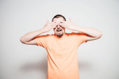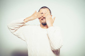 Zdjęcie "Mężczyzna zamyka oczy dłońmi" może być wykorzystywane do celów osobistych i komercyjnych zgodnie z warunkami zakupionej licencji Royalty-free. Obraz jest dostępny do pobrania w jakości wysokiej rozdzielczości do 5760x3840.