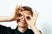 Zdjęcie "człowiek patrząc przez ręce, tworząc lornetkę" może być wykorzystywane do celów osobistych i komercyjnych zgodnie z warunkami zakupionej licencji Royalty-free. Obraz jest dostępny do pobrania w jakości wysokiej rozdzielczości do 5760x3840.