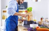 Zdjęcie "Człowiek przygotowuje pyszne i zdrowe jedzenie w kuchni domowej" może być wykorzystywane do celów osobistych i komercyjnych zgodnie z warunkami zakupionej licencji Royalty-free. Obraz jest dostępny do pobrania w jakości wysokiej rozdzielczości do 5760x3840.