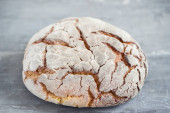 Zdjęcie "Świeżo upieczony chleb żytni w papierze rzemieślniczym na ciemnobrązowym tle. Produkcja rękodzieła. Widok z góry, przestrzeń kopiowania." może być wykorzystywane do celów osobistych i komercyjnych zgodnie z warunkami zakupionej licencji Royalty-free. Obraz jest dostępny do pobrania w jakości wysokiej rozdzielczości do 5760x3840.