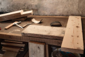 Różne narzędzia stolarskie na drewnianym stole gotowe do naprawy.