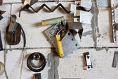 Różne narzędzia stolarskie na drewnianym stole gotowe do naprawy.