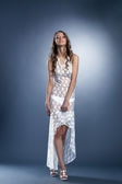 namiętne młode dziewczyna pozuje w szlafrok świecące