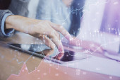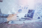 Zdjęcie "Multi ekspozycji wykres finansowy z człowiekiem pracuje w biurze na tle. Koncepcja analizy." może być wykorzystywane do celów osobistych i komercyjnych zgodnie z warunkami zakupionej licencji Royalty-free. Obraz jest dostępny do pobrania w jakości wysokiej rozdzielczości do 5760x3840.