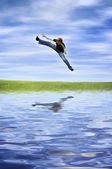 Zdjęcie "fantastyczny skok nad wodą" może być wykorzystywane do celów osobistych i komercyjnych zgodnie z warunkami zakupionej licencji Royalty-free. Obraz jest dostępny do pobrania w jakości wysokiej rozdzielczości do 5760x3840.