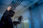 Zdjęcie "Widok z tyłu profesjonalnych robotników budowlanych montujących pod dachem warstwę izolacji termicznej z wełny mineralnej" może być wykorzystywane do celów osobistych i komercyjnych zgodnie z warunkami zakupionej licencji Royalty-free. Obraz jest dostępny do pobrania w jakości wysokiej rozdzielczości do 5760x3840.