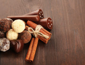 smaczne orientalnych słodyczy na tacy i szklanek herbaty, na szarym tle drewniane