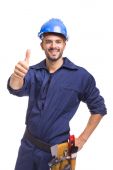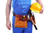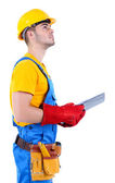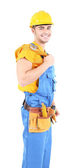 portret młodego konstruktora na białym tle