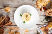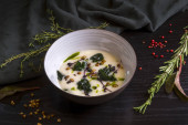 Zdjęcie "Pyszna piękna zupa grzybowa w brązowym talerzu z drewnianą łyżką na ciemnobrązowym tle" może być wykorzystywane do celów osobistych i komercyjnych zgodnie z warunkami zakupionej licencji Royalty-free. Obraz jest dostępny do pobrania w jakości wysokiej rozdzielczości do 5760x3840.