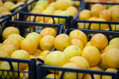 cytryny w skrzyniach w supermarkecie. zdrowej żywności. witaminy.