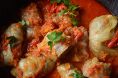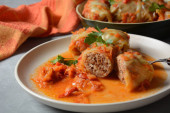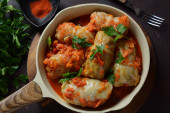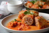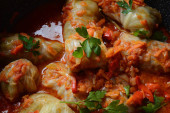 Kapusta nadziewana mieloną wołowiną i ryżem w sosie pomidorowym