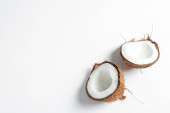Zdjęcie "Połówki kokosa na białym tle, zbliżenie" może być wykorzystywane do celów osobistych i komercyjnych zgodnie z warunkami zakupionej licencji Royalty-free. Obraz jest dostępny do pobrania w jakości wysokiej rozdzielczości do 5760x3840.