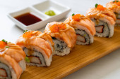 Grillowane sushi z łososia w sosie - Japoński styl żywności