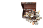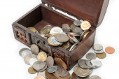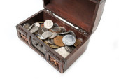kolekcja monet w starym pudełku retro