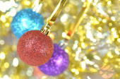 świąteczne dekoracje, kolorowe Boże Narodzenie Kula i bokeh tło