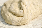 świeże ciasto do pieczenia na drewnianym stole z bliska.