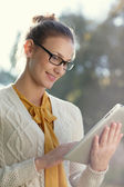 Zdjęcie "kobieta w okularach przy użyciu komputera typu tablet" może być wykorzystywane do celów osobistych i komercyjnych zgodnie z warunkami zakupionej licencji Royalty-free. Obraz jest dostępny do pobrania w jakości wysokiej rozdzielczości do 5760x3840.