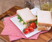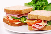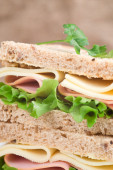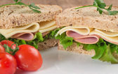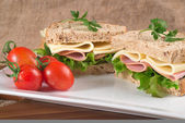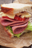 Świeży szynka i ser biały kanapkę w kuchni rustykalnej ustawienie