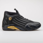 VIENNA, AUSTRIA - sierpień 2, 2017: Trampki Nike Air Jordan 13 Retro Low czarne i pomarańczowe na białym tle.