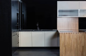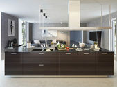 3d renderowanie nowego drewnianego z marmurową szafką kuchenną