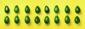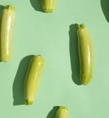 Wegańska koncepcja zdrowej żywności - ogórki i awokado na brzoskwiniowym tle. Koncepcja idei i żarówki