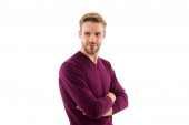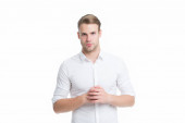 Zdjęcie "Męska moda i piękno. Sklep odzieżowy. Usługi fryzjerskie. Jego styl jest naśladowany przez wielu. Wygląda modnie. Pielęgnacja twarzy. Przystojniak odizolowany na białym. Nieogolony człowiek. Hipsterski gość. Salon fryzjerski" może być wykorzystywane do celów osobistych i komercyjnych zgodnie z warunkami zakupionej licencji Royalty-free. Obraz jest dostępny do pobrania w jakości wysokiej rozdzielczości do 5760x3840.