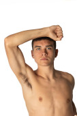 Zdjęcie "Waga losee koncepcja pokazuje umięśniony młody mężczyzna gospodarstwa gospodarstwa umieścić worgy ubrania i dając kciuki w górę" może być wykorzystywane do celów osobistych i komercyjnych zgodnie z warunkami zakupionej licencji Royalty-free. Obraz jest dostępny do pobrania w jakości wysokiej rozdzielczości do 5760x3840.