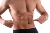 Zdjęcie "Masa losee koncepcja pokazuje umięśniony młody mężczyzna gospodarstwa umieścić worgy ubrania" może być wykorzystywane do celów osobistych i komercyjnych zgodnie z warunkami zakupionej licencji Royalty-free. Obraz jest dostępny do pobrania w jakości wysokiej rozdzielczości do 5760x3840.