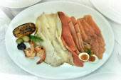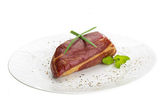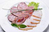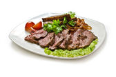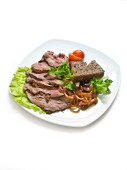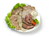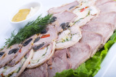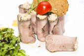 Piękne i smaczne świeże danie mięsno-warzywne, przystawka, kanapka lub kanapki.