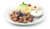 Piękne i smaczne świeże danie mięsno-warzywne, przystawka, kanapka lub kanapki.