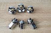 Serwis samochodowy, nakrętka mocująca koła samochodu na drewnianym stole