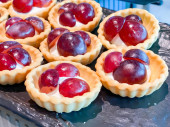 Pyszne i smaczne kawałki placków ozdobione świeżymi owocami