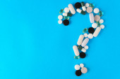 pigułki na kolorowym tle widok z góry. Medycyna, leczenie, choroba. Leki w tabletkach.