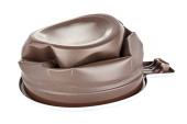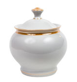 Perłowy plastikowy pojemnik do przechowywania czosnku w kształcie głowy czosnku izolowany na białym tle z refleksją na błyszczącej powierzchni