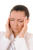 młoda kobieta ma bóle głowy i masaże jej świątynie przez palce