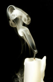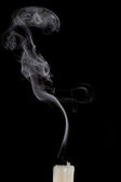 Kwiat rumianku w bagażniku strzelby i dym z odizolowanego na czarnym tle strzału