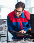 Zdjęcie "Technik komputerowy instalujący oprogramowanie" może być wykorzystywane do celów osobistych i komercyjnych zgodnie z warunkami zakupionej licencji Royalty-free. Obraz jest dostępny do pobrania w jakości wysokiej rozdzielczości do 5760x3840.