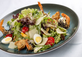Ciepła sałatka z warzywami, rukolą i cielęciną