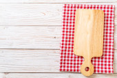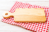 Red checkered tablecloth and wooden spoon for cooking and baking. Background with copy space. Horizontal.