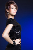 miła dziewczyna na czerwonym tle