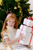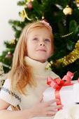 portret szczęśliwy mało słodkie dziewczyny z prezentem