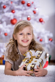 portret szczęśliwy mało słodkie dziewczyny z prezentem