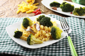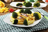 makaron z brokułów śmietaną i orzechami