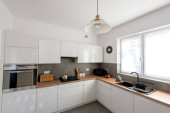 Zdjęcie "Mała kuchnia nowoczesna koncepcja wystroju wnętrz" może być wykorzystywane do celów osobistych i komercyjnych zgodnie z warunkami zakupionej licencji Royalty-free. Obraz jest dostępny do pobrania w jakości wysokiej rozdzielczości do 5760x3840.