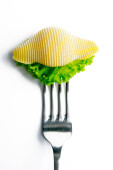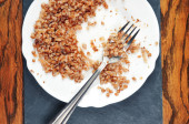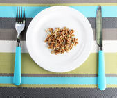 Kasze gryczane na białym talerzu wyizolowane na żółtym tle. Najlepsze widoki
