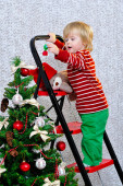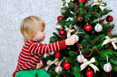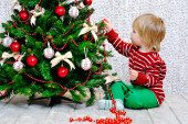 mały chłopiec i choinki